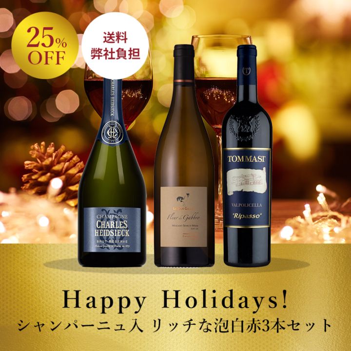 <12月限定特価><送料弊社負担>Happy Holidays! 泡白赤3本セット