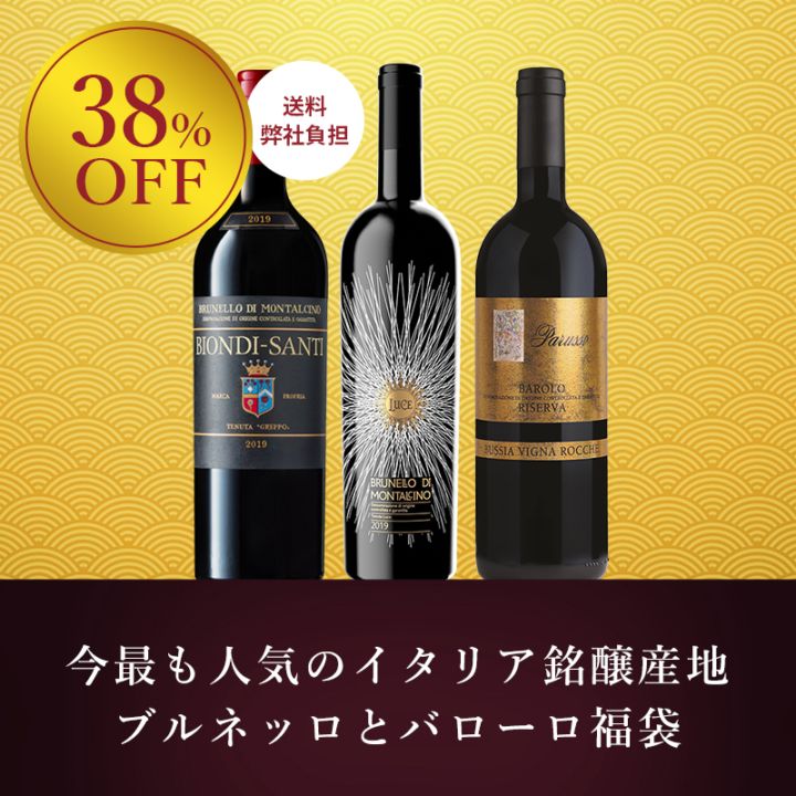 今最も人気の高いイタリアのプレステージ産地ブルネッロ・ディ・モンタルチーノとバローロから、最高峰とも言えるワインを集めた大変お得な福袋をご用意いたしました。ブルネッロ・ディ・モンタルチーノのオリジン ビオンディ・サンティと、トスカーナのスーパープレミアムワイン ルーチェのブルネッロの最新ヴィンテージ。さらに、バローロは名高い銘醸畑ブッシアの単一畑から生まれる希少品。お買い忘れなく!