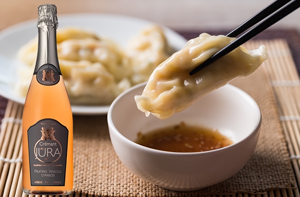 水餃子の独特な形は中国の昔の貨幣である銀貨がルーツ。そのため春節に餃子を食べると、その年に富がもたらされると言われています。口に含むとあふれ出すジューシーな肉汁と香味野菜のボリュームのある風味をスパークリングワインの泡がすっきりと流してくれます。色調も淡いサーモンピンクで泡が途切れることなく立ちあがり、赤い果実の香りとしなやかな口当たりを楽しめるとっても万能なロゼ・スパークリングワインです。